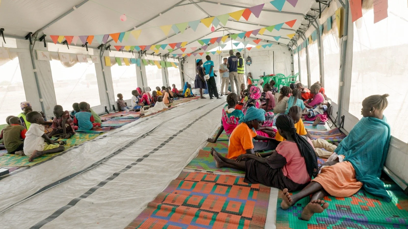 Children interacting at a child-friendly space in the GeiGer, Renk County, Jonglei State. The center is run by the Africa Development Aid (ADA) with the support from UNICEF South Sudan.