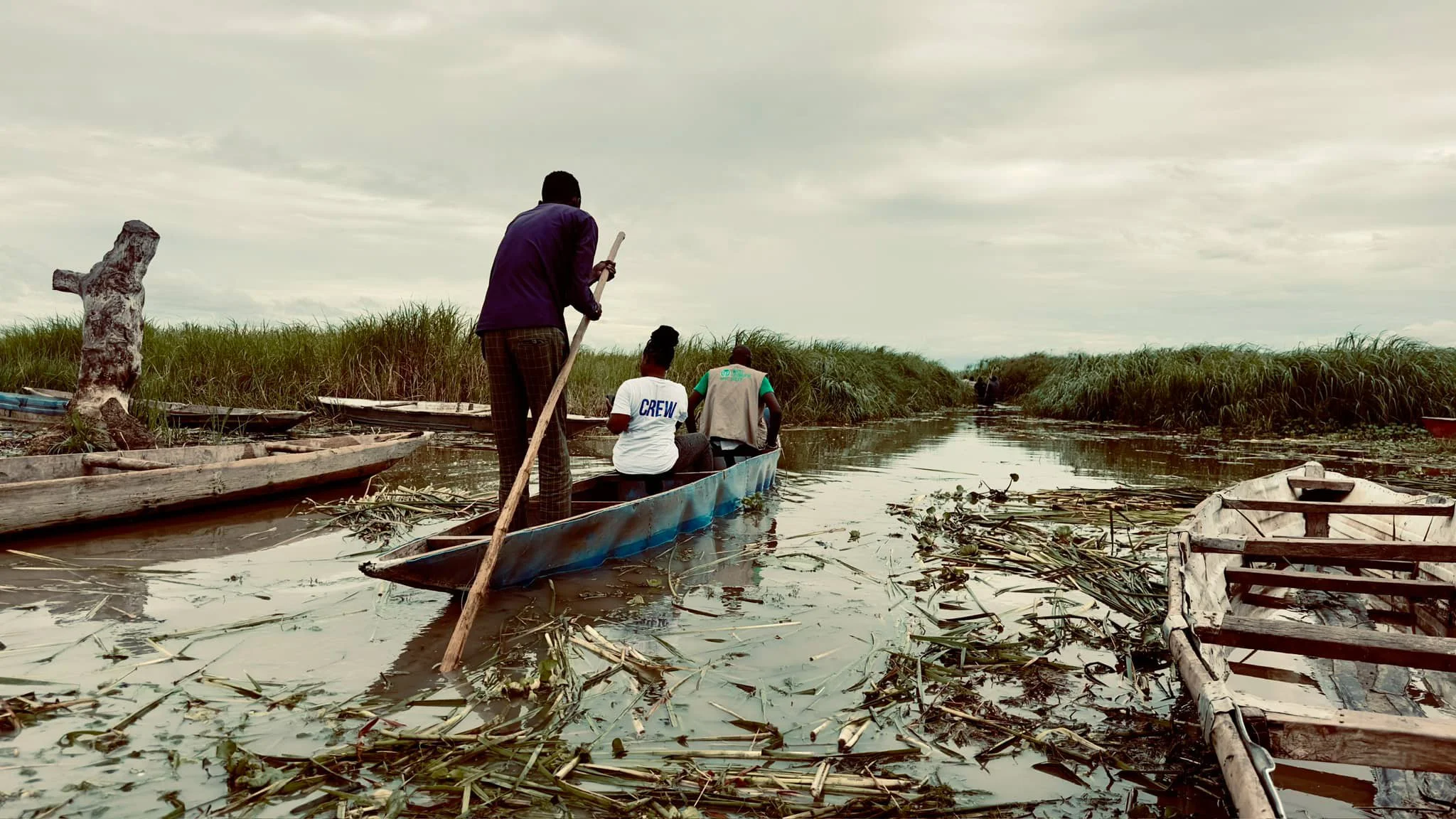 Ruthilla Digital team uses a canoe during field assignment. We go to some of the remotest places just to deliver the work.