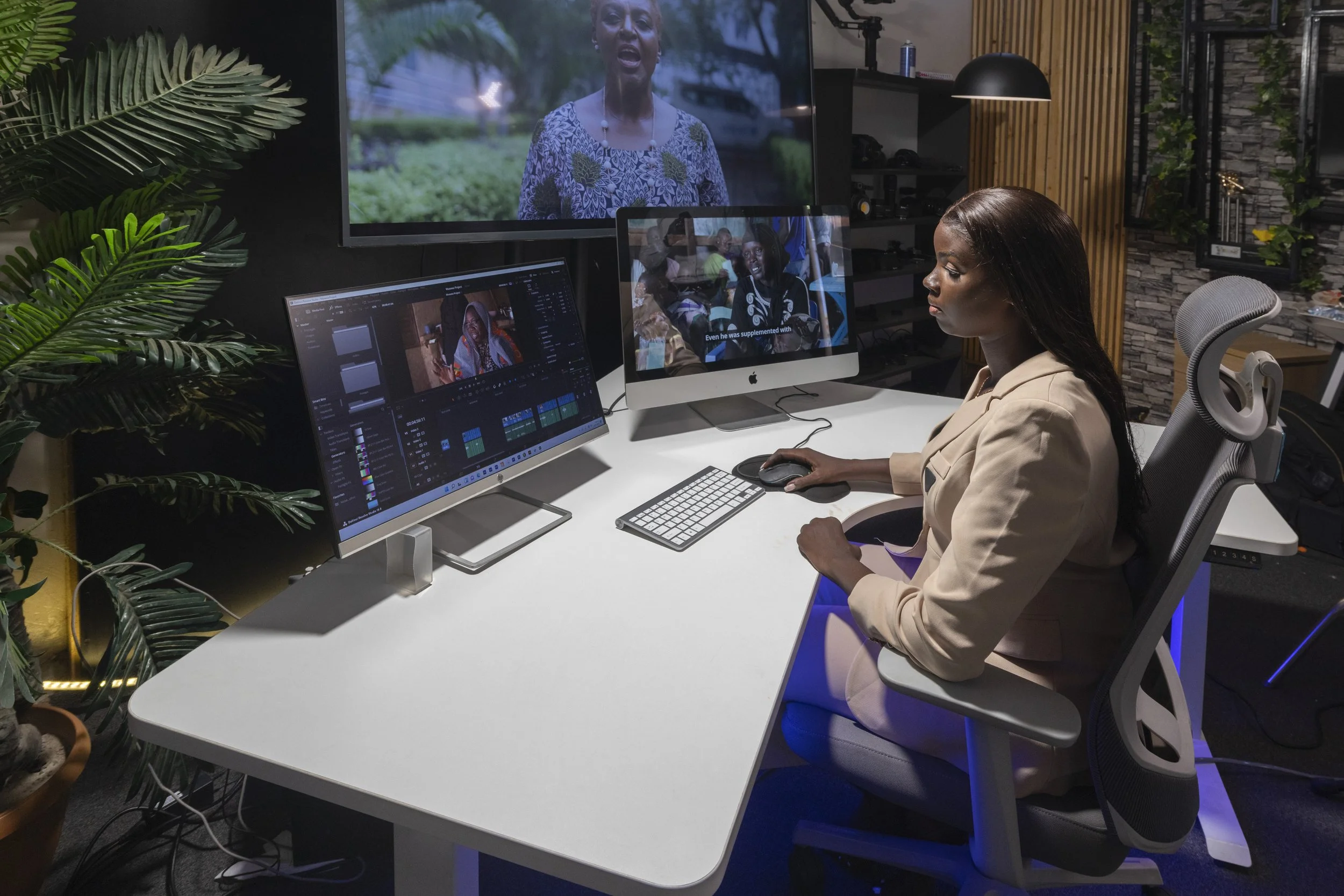 Equipped with iMac Pro M4, MacBook Pro M4, Adobe Creative Cloud 2025, DaVinci Resolve 20, and Final Draft — all optimized for high-performance video editing, motion graphics, and sound mixing.